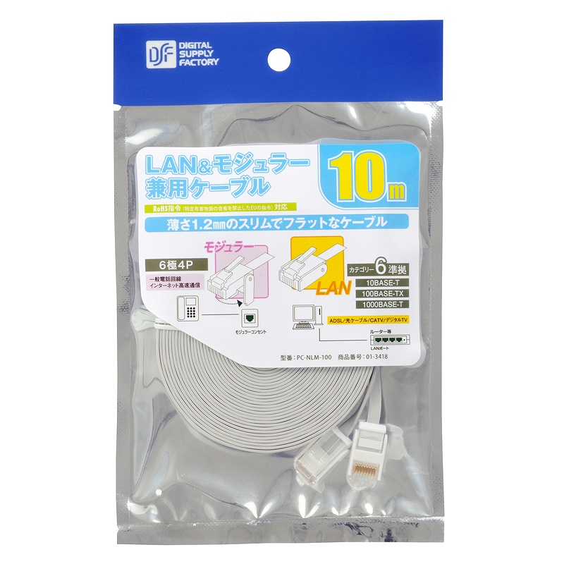 - LAN&モジュラー 兼用ケーブル 10m [品番]01-3418