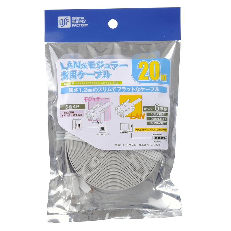 - LAN&モジュラー 兼用ケーブル 20m [品番]01-3420