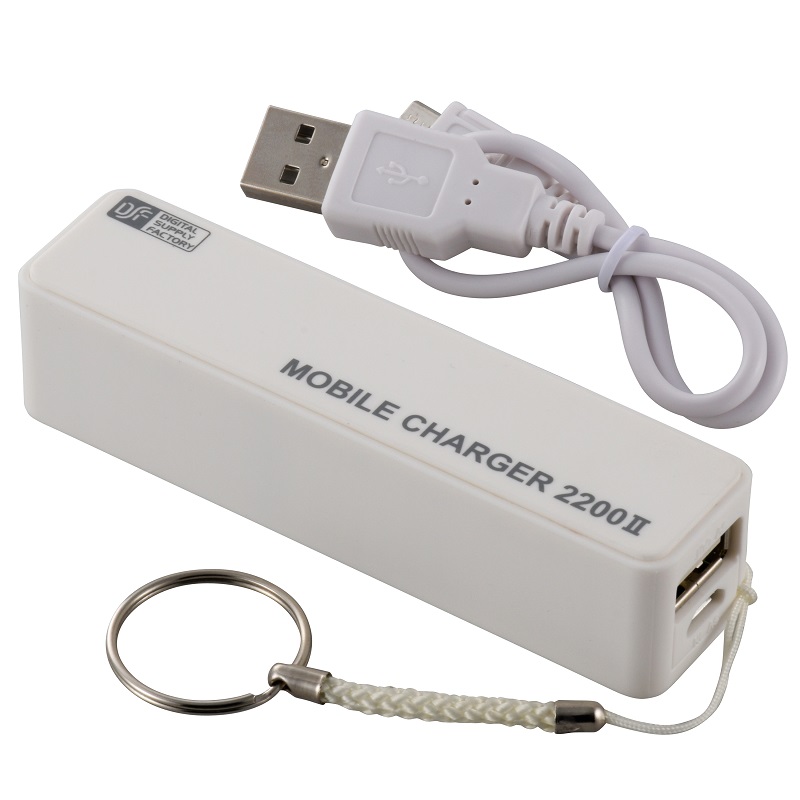 リチウム電池充電器 モバイルチャージャー 2200mAh ホワイト [品番]01-0468
