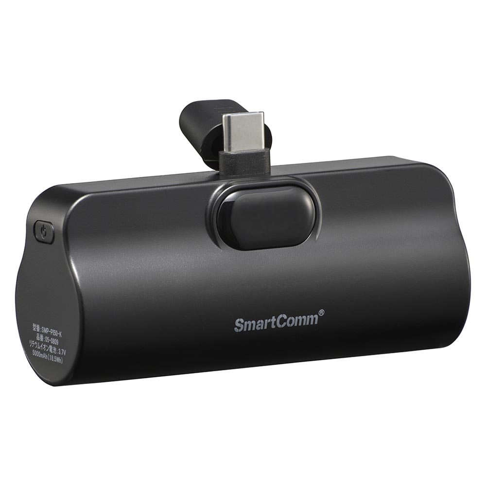 - SmartComm モバイルバッテリー 直挿しタイプ 5000mAh ブラック [品番]05-0809
