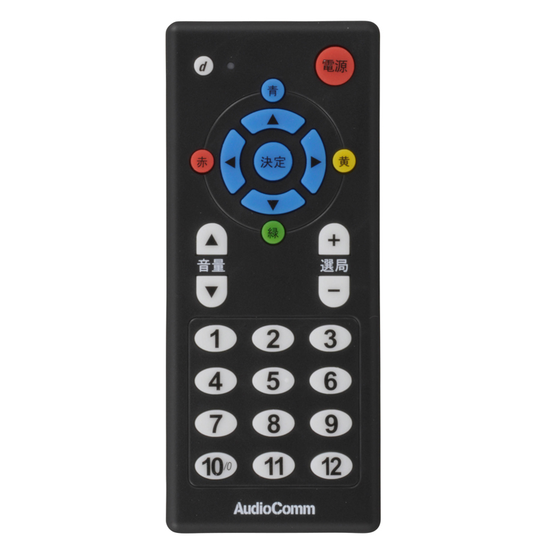 - ● d(データ連動)ボタンと電源/チャンネル/音量操作に的を絞ったシンプル機能のリモコン