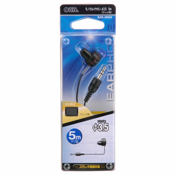 - モノラルイヤホン TV用 5m 黒 [品番]01-0004