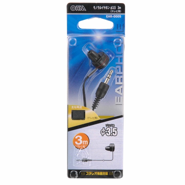 - モノラルイヤホン TV用 3m 黒 [品番]01-0005