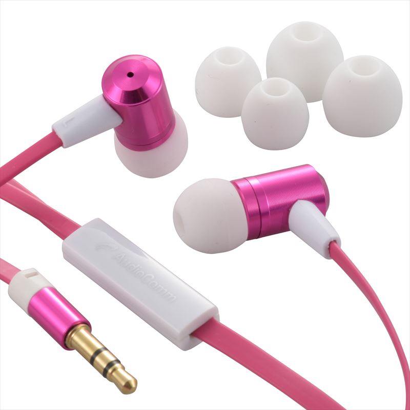 AudioCommステレオイヤホン 音量コントローラー付 ピンク [品番]03-1654