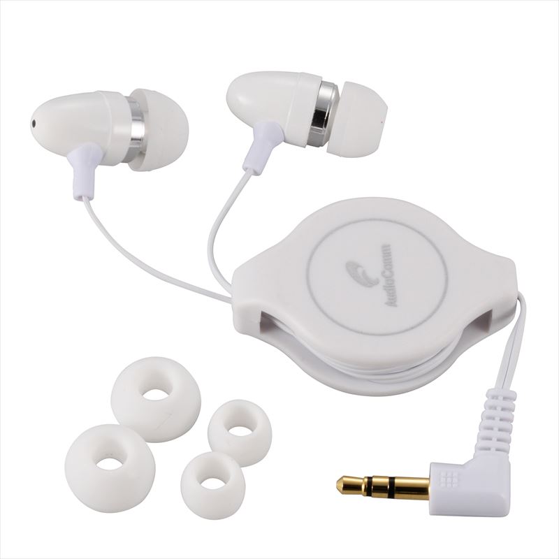 AudioCommステレオイヤホン コードリール付 ホワイト [品番]03-1611