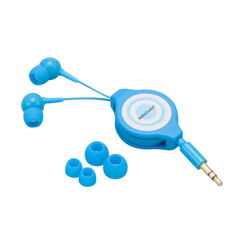 AudioCommステレオイヤホン 巻取型 カナルタイプ ブルー [品番]03-2753