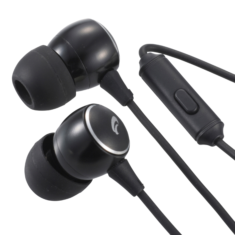- AudioCommステレオイヤホン マイク付 ブラック [品番]03-2248