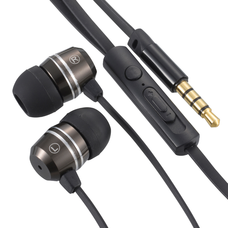 - AudioCommステレオイヤホン マイク・音量調節付 ブラック [品番]03-2256