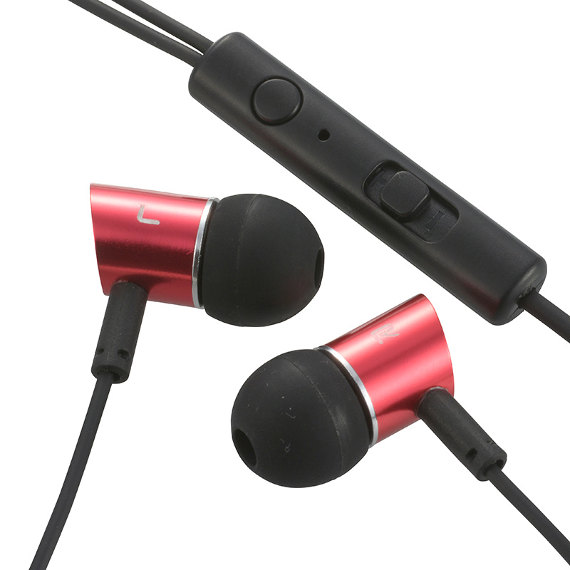 AudioCommリモコン付イヤホン スマホ専用 レッド [品番]03-1691