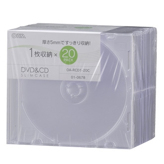 DVD/CDディスクケース 1枚収納×20パック 5mm クリア [品番]01-0678