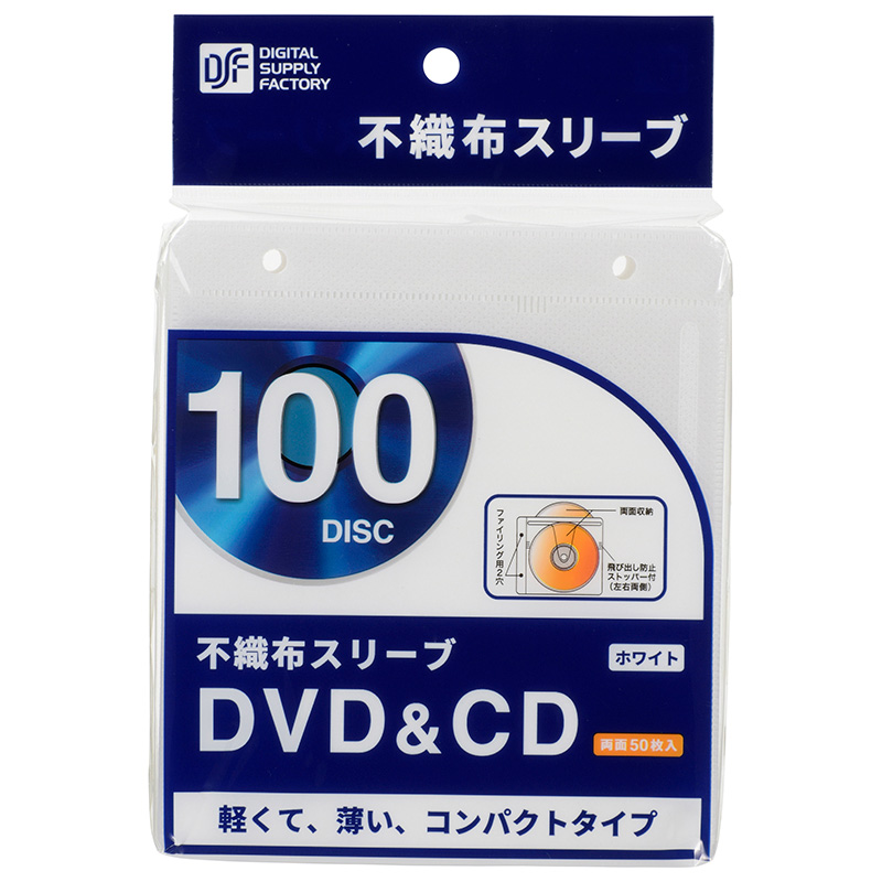 - DVD/CD不織布スリーブ 両面収納×50枚 ホワイト [品番]01-3780