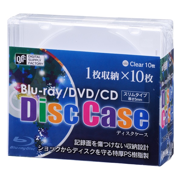 ブルーレイ/DVD/CDディスクケース 1枚収納×10パック 5mm クリア [品番]01-3297
