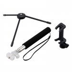 - ● 自撮り棒、ホルダー、ミニ三脚の3点セットで、撮り方自由自在