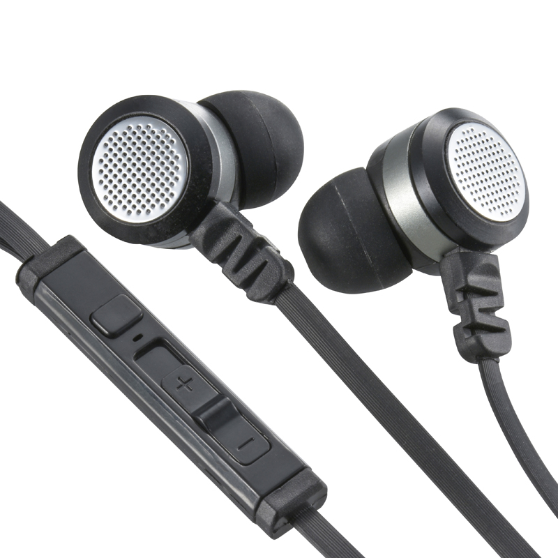 AudioCommステレオイヤホン リモコン付 ブラック [品番]03-0388