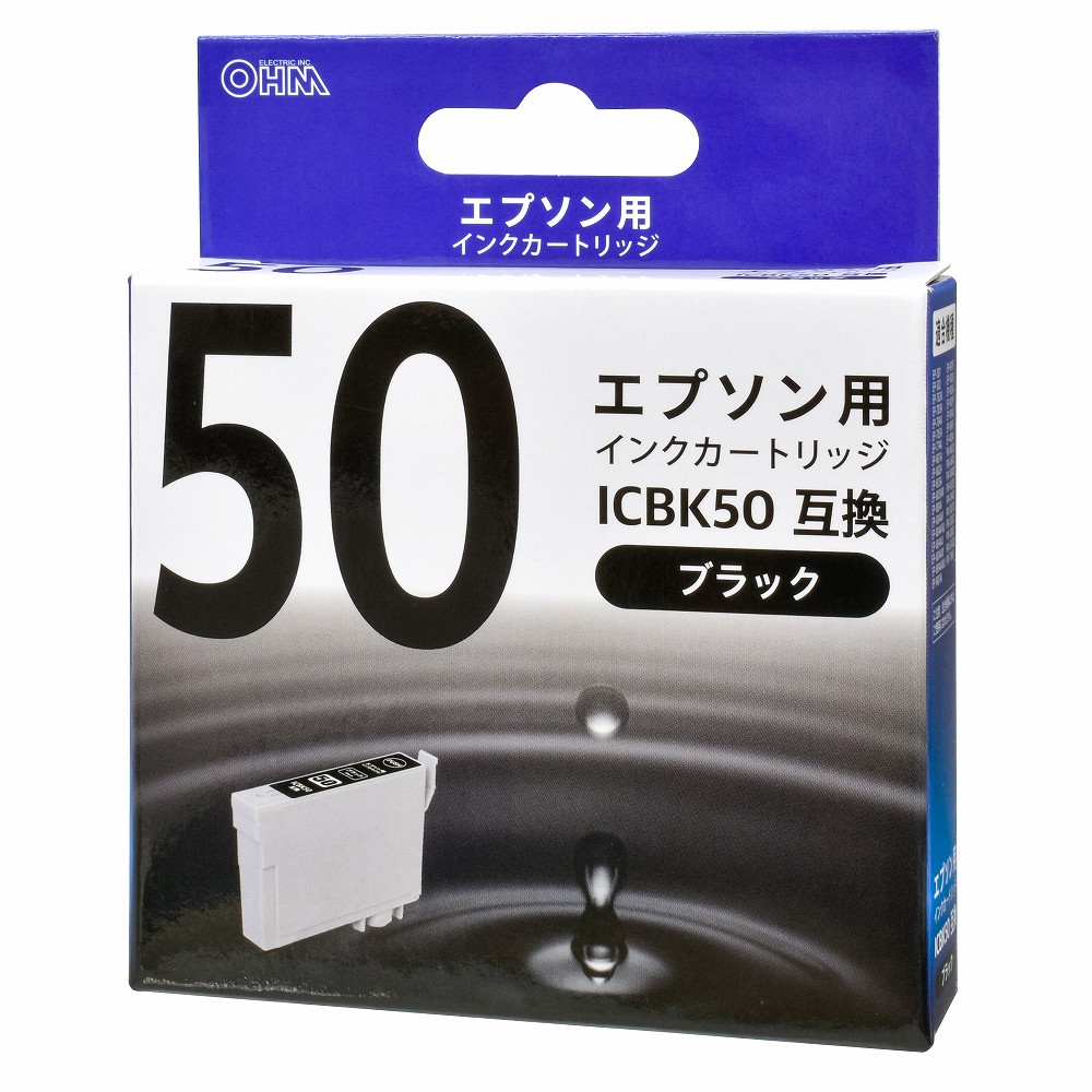 - ● エプソンの純正インクカートリッジICBK50/染料ブラックの代わりに使える互換インクカートリッジです。
