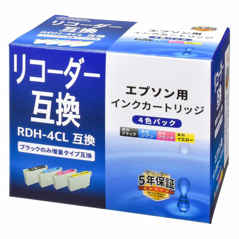 - ● エプソンの純正インクカートリッジ リコーダー 顔料4色パック(RDH-4CL)の代わりに使える互換インクカートリッジです。