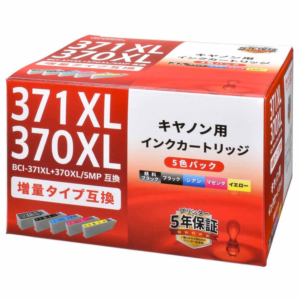 キヤノン互換 BCI-371XL+370XL/5MP 顔料ブラック+染料4色 [品番]01-4236