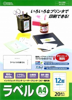■ 染料・顔料インクに対応しています。 ■ A4サイズ・12面 ■ ラベル1片のサイズ:83.8×42.3mm ■ 20枚入り(240片)