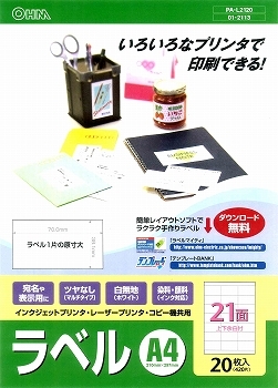 ■ 染料・顔料インクに対応しています。 ■ A4サイズ・21面 ■ ラベル1片のサイズ:70.0×38.1mm ■ 20枚入り(420片)