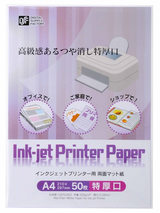 ■ サイズ:A4(両面) ■ 坪量:220g/m2 ■ 厚さ:0.28mm ■ 白色度:100%(ISO) ■ 枚数:50