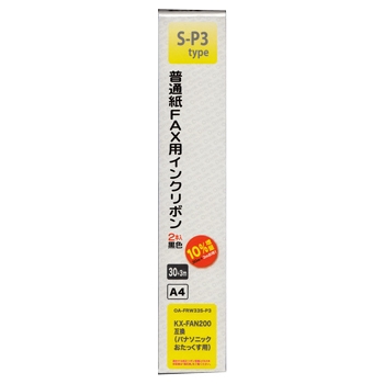 ■ A4サイズ・黒 ■ 幅208mm×長さ33m ■ S−P3タイプ ■ 2本入り ■ 適応する純正インクリボン型番 パナソニック…おたっくす用 KX−FAN200
