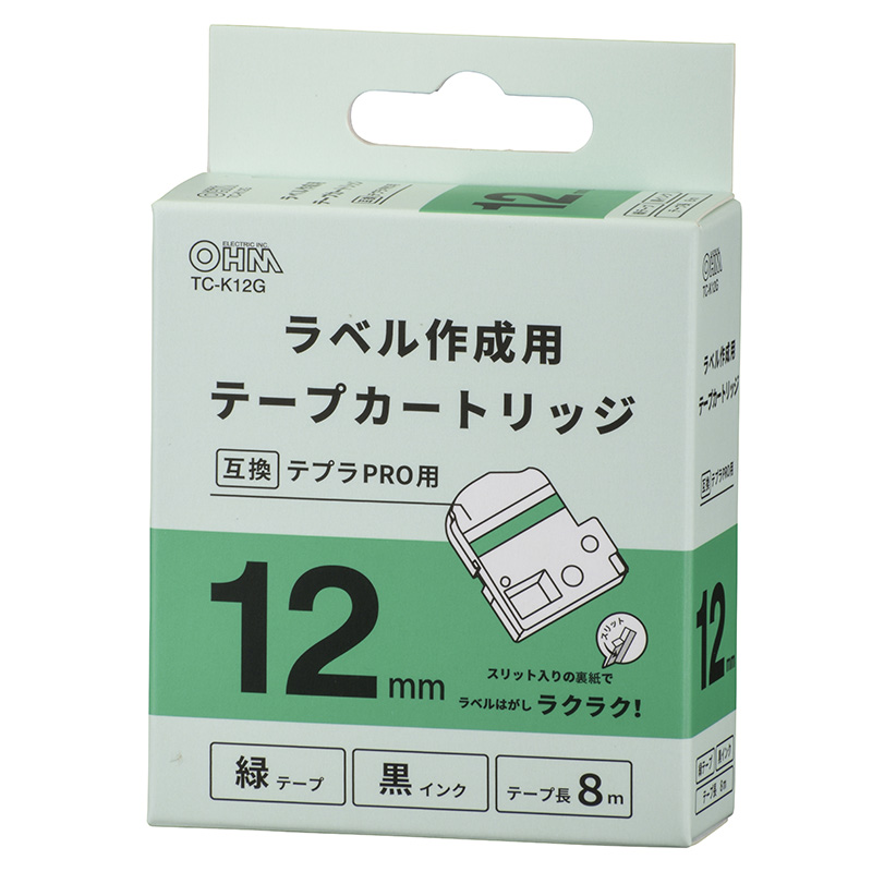 テプラ互換ラベル 緑テープ 黒文字 幅12mm [品番]01-3821