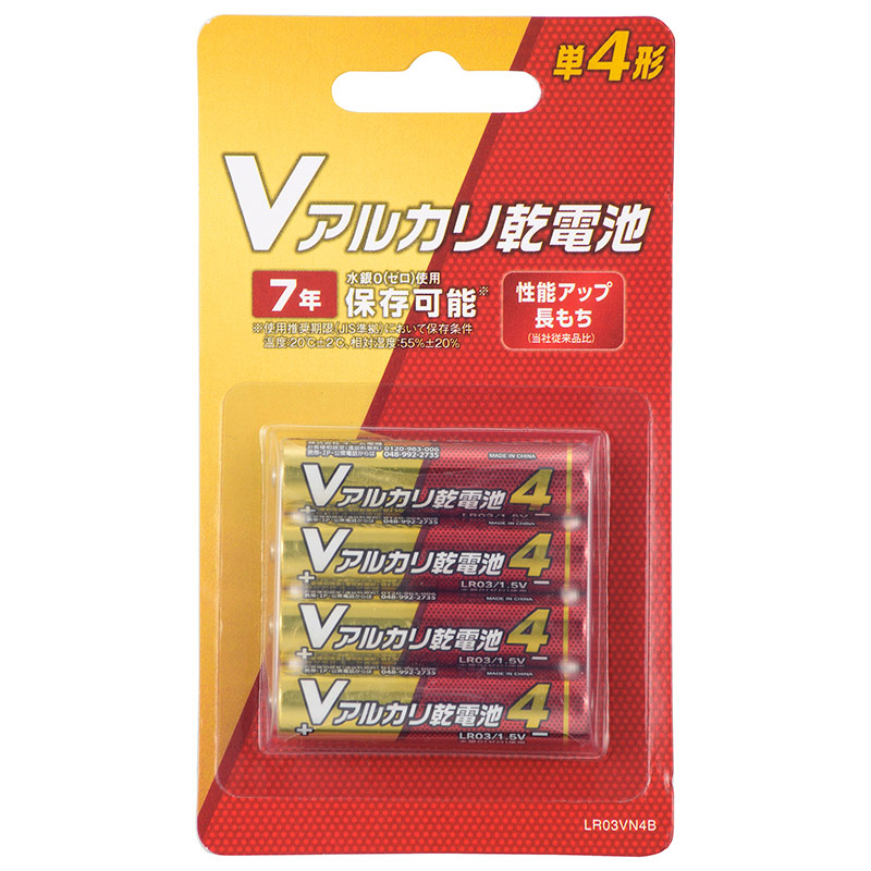Vアルカリ乾電池 単4形 4本パック [品番]08-4044