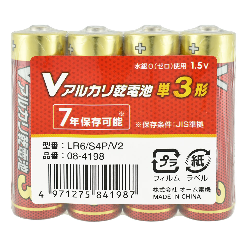 Vアルカリ乾電池 単3形 4本パック [品番]08-4198