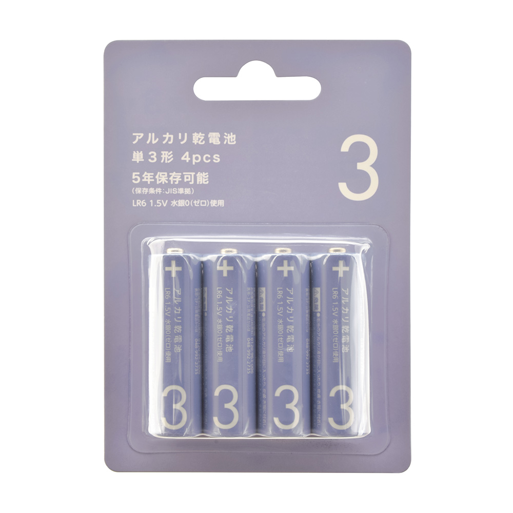 アルカリ乾電池 単3形 4本パック 青 [品番]08-4169