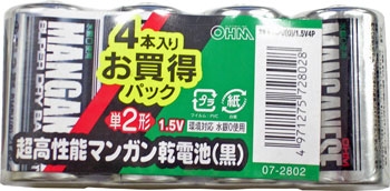OHM マンガン 黒 単2形 4本パック [品番]07-2802