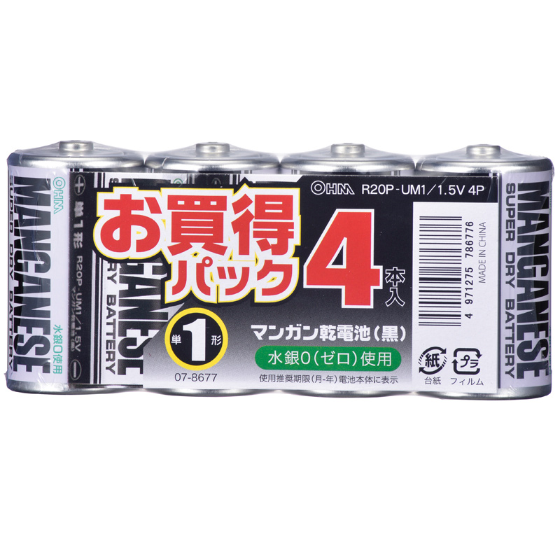 マンガン乾電池 単1形×4本 [品番]07-8677