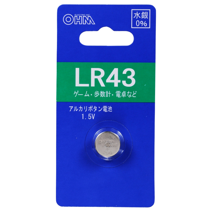 アルカリボタン電池 LR43 1.5V [品番]07-3686