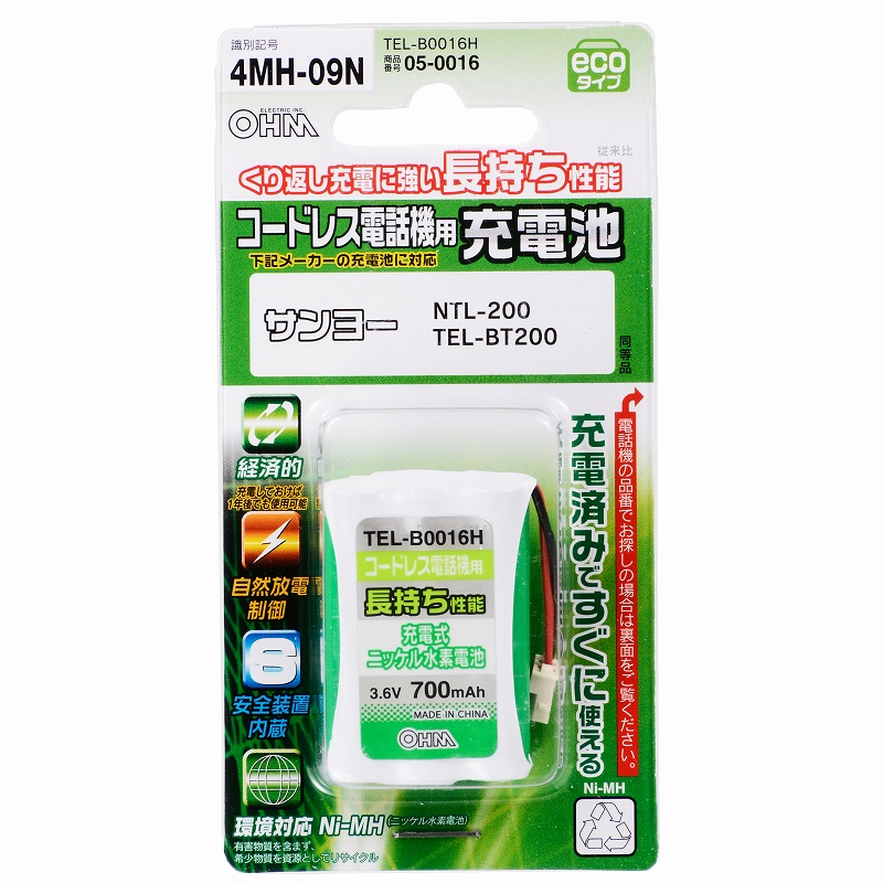 コードレス電話機用充電池 TEL-B0016H [品番]05-0016