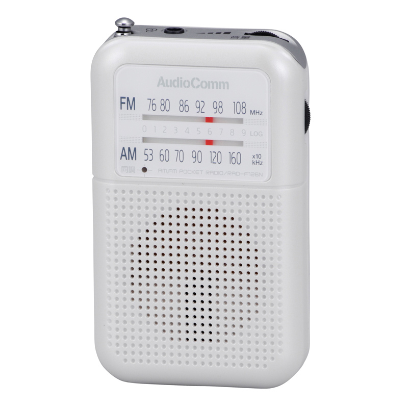 AudioComm 2バンドポケットラジオ ホワイト [品番]07-8152
