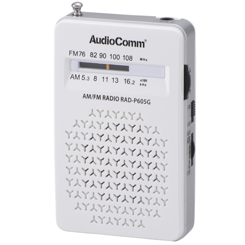 AudioComm AM/FMポケットラジオ ホワイト [品番]07-8605