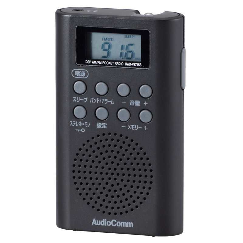AudioCommワイドFM対応 DSP FMステレオ/AMポケットラジオ ブラック [品番]07-8663