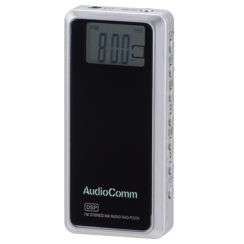 - ● ワイドFM対応の超コンパクトラジオ、スタイリッシュブラック