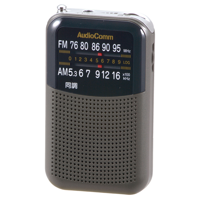 AudioComm AM/FMポケットラジオ グレー [品番]07-8952
