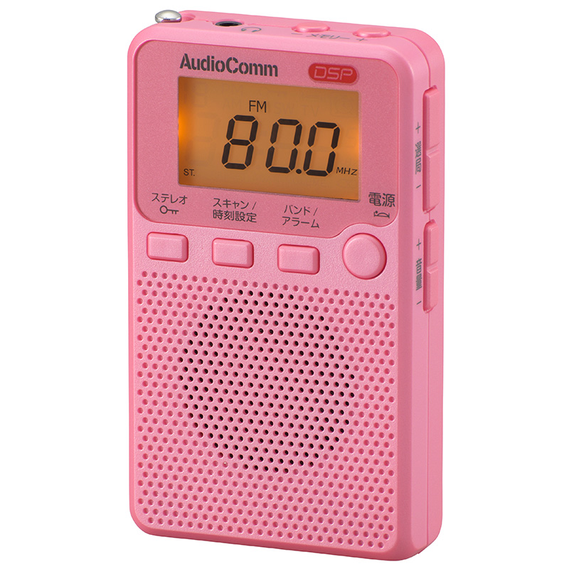 AudioComm DSP FMステレオAMポケットラジオ ピンク [品番]03-0954