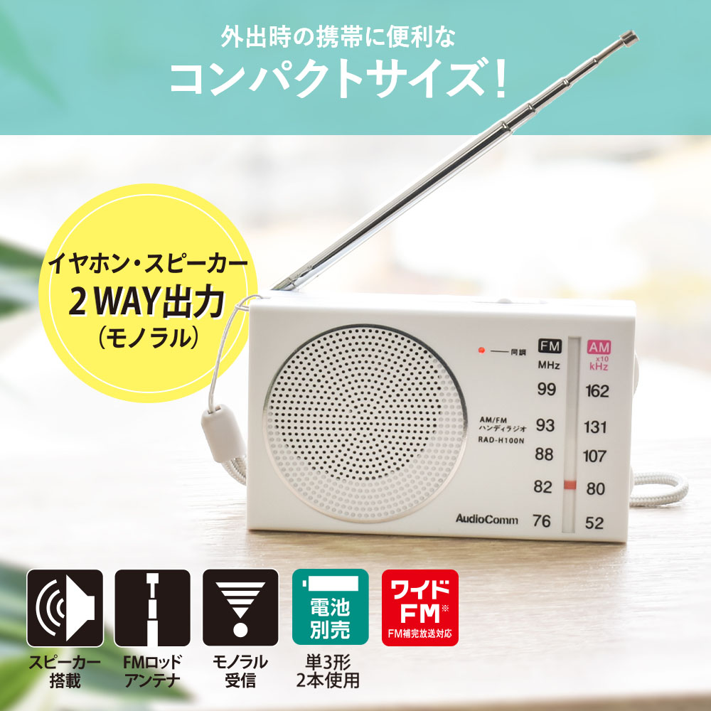 AudioComm AM/FMハンディラジオ ホワイト [品番]03-5635