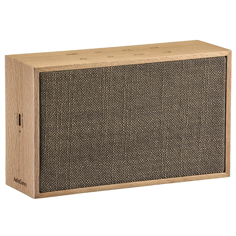 AudioCommワイヤレススピーカー 木製・麻 ベージュ [品番]03-3183