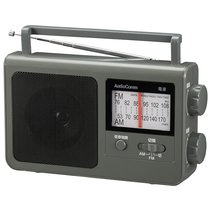 AudioComm AM/FMポータブルラジオ グレー [品番]03-1688