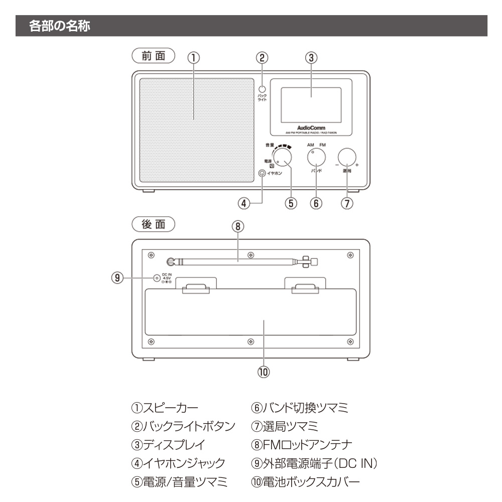 ■ アンテナ:AM…内蔵フェライトバーアンテナ、FM…FMロッドアンテナ