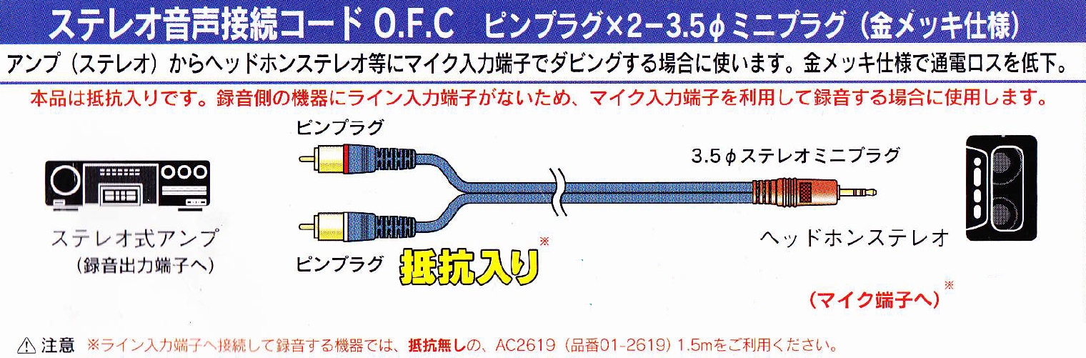 ■ プラグ仕様:φ3.5ミニプラグ-ピンプラグx2 ■ コード長:1.5m ■ 高伝導率金メッキ仕様 ■ 抵抗入り