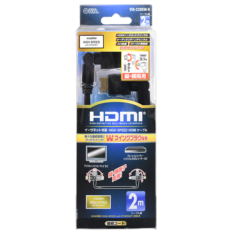 - HDMIケーブル Wスイング 2m [品番]05-0293