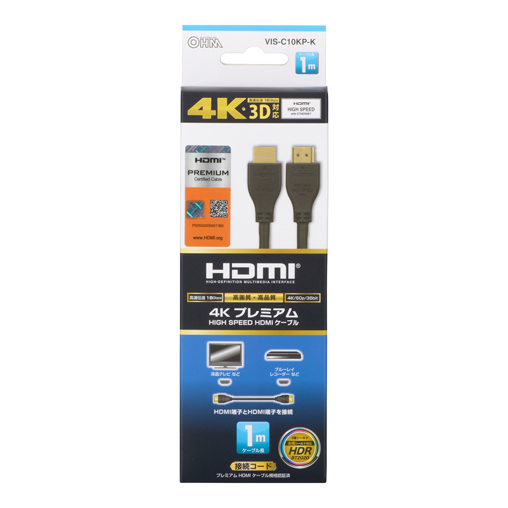 プレミアムHDMIケーブル 4K・3D対応 1m [品番]05-0521