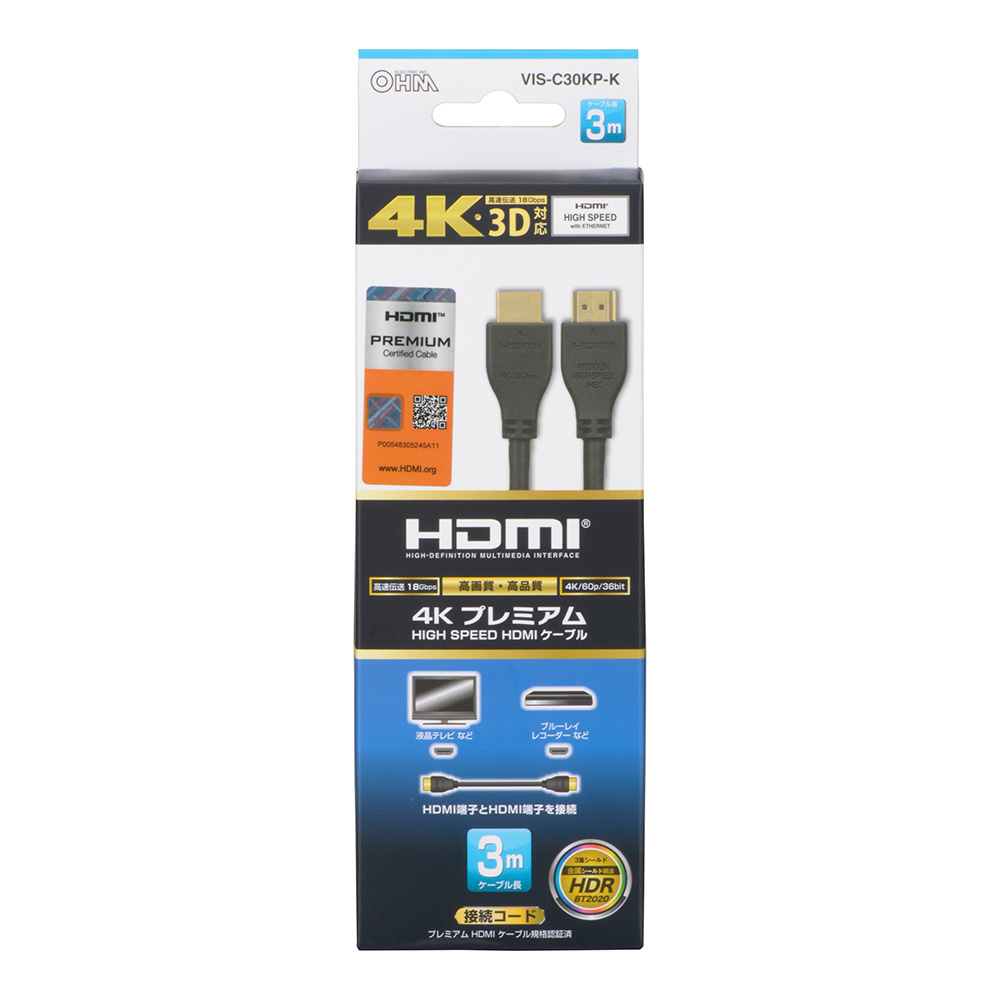 - プレミアムHDMIケーブル 4K・3D対応 3m [品番]05-0524