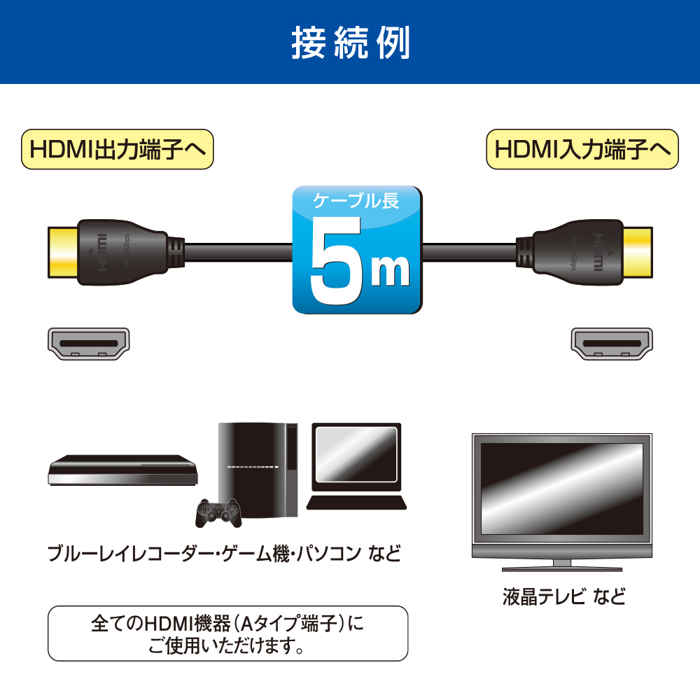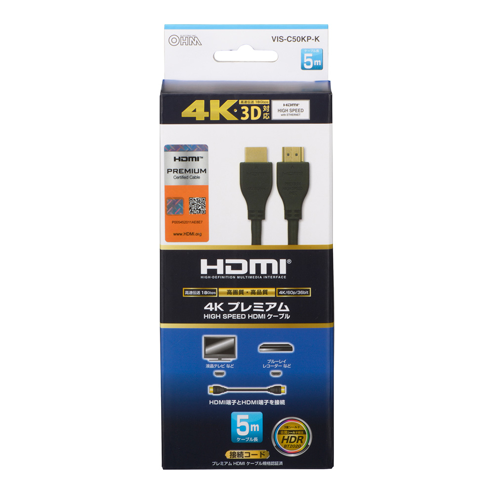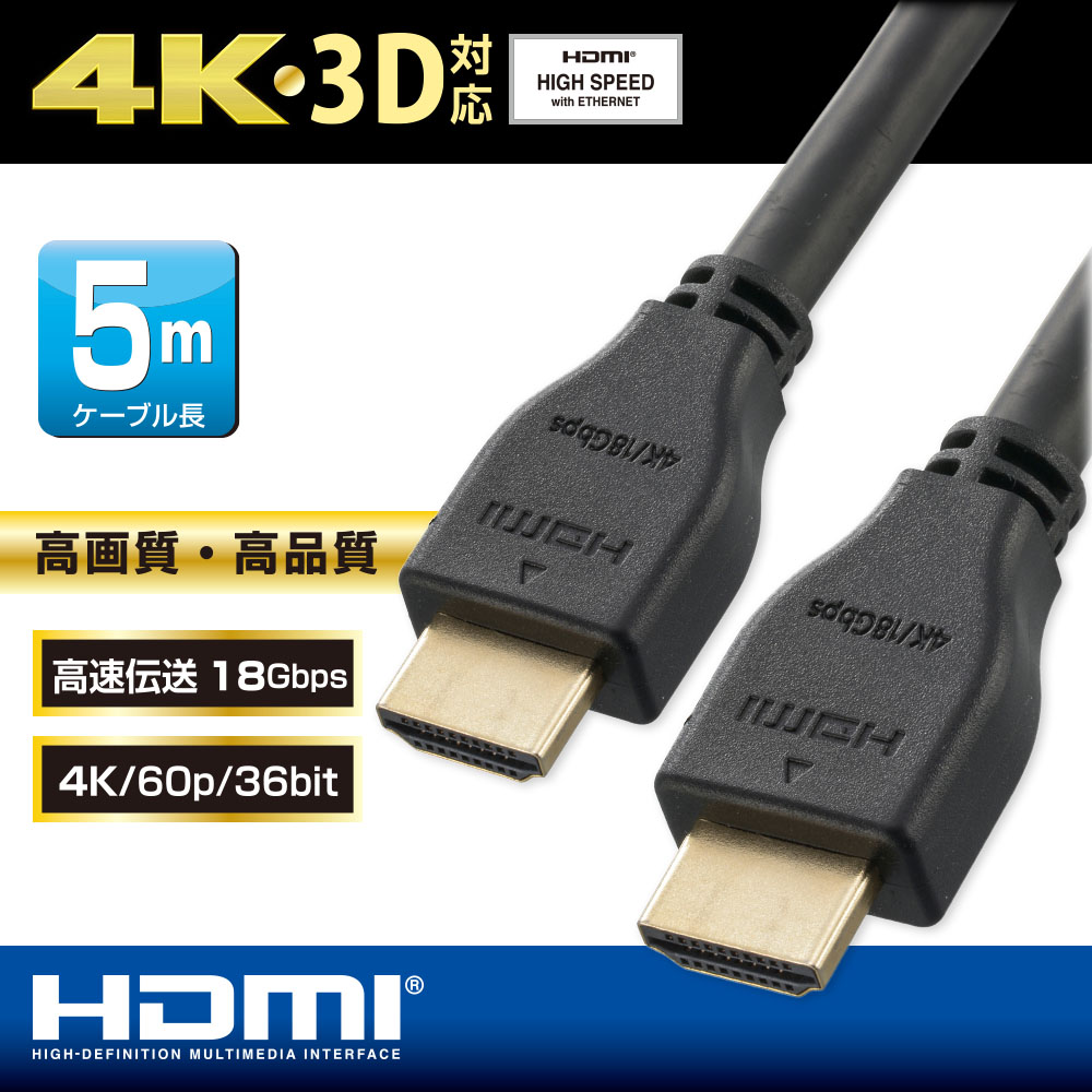 - プレミアムHDMIケーブル 4K・3D対応 5m [品番]05-0525