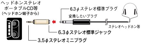 - ● φ6.3ステレオ標準プラグをステレオポータブルCD等のφ3.5ステレオミニプラグに変換します。
