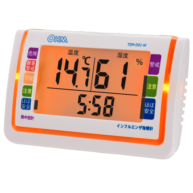 デジタル温湿度計 インフルエンザ/熱中症注意表示付き [品番]08-0070